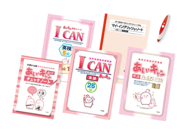 オンライン英会話の前後には、英語教材「あいキャン」を使った学習を行います。会話だけで終わらせず、事前・事後にテキスト学習を行うことで、使える単語数や表現の幅が広がり、英会話にも自然と弾みがつきます。